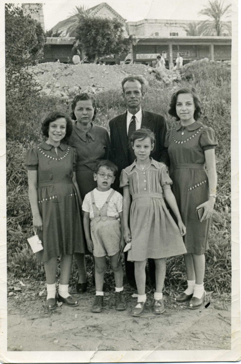מעל: שולה (סלמה) בן-אבט, יצחק בן-אבט, ויקטוריה בן-אבט, רינה בן-אבט. מתחת: רחל (רוחלה) בורוביץ, בנימין בן-אבט.